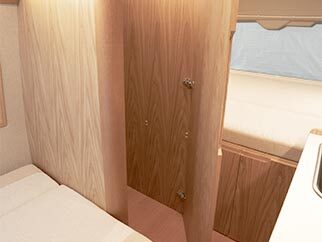 「シェスタ」は、常設ベッド、リビング、カーゴ、フリールーム 、それぞれ独立している空間になっています。リビングソファーもベッド展開が可能で、常設ベッドと合わせて、最大3名が就寝できます。 リビングとベッドスペースが独立しているため、ダイネットを片付けなくても就寝が可能なレイアウトです。リビングスペースの後ろにはフリールームを配置。トイレルーム、長尺物の収納等、アイディア次第でマルチなスペースとして活躍します。